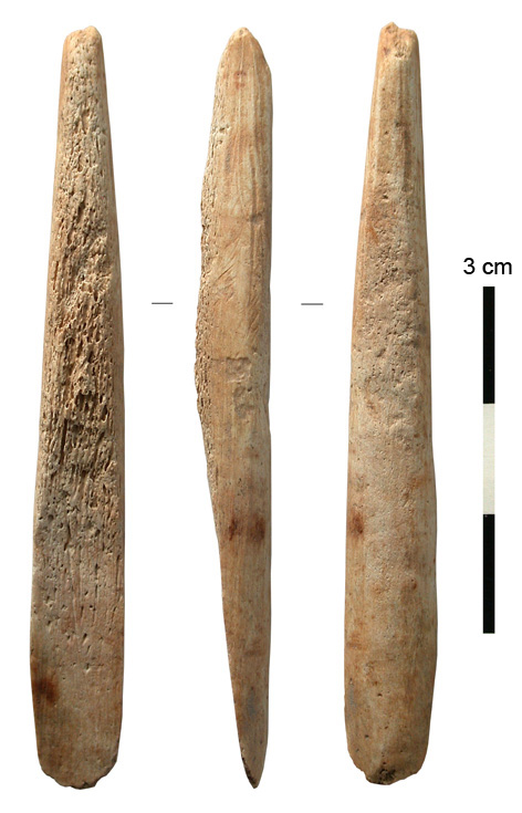 205-206) a été fortement perturbé par des activités modernes (carrière de blocs calcaires et/ou fouille du XIXe siècle), avec notamment le creusement probable d’une tranchée. Seul l’ensemble inférieur (US 207) paraît bien conservé, sous la forme d’un mince niveau formant actuellement la base de l’archéostratigraphie (le remplissage sous-jacent étant quasi stérile sur les 50 cm d’épaisseur fouillés). Dans la grotte, sous un ensemble perturbé par les racines et les terriers (US 301-305), un second ensemble (US 306-311) présente, sur plus de 50 cm d’épaisseur, un fort potentiel archéologique : industrie lithique abondante, faune et industrie osseuse très bien conservées.